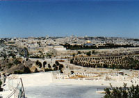 The Temple Mount is slightly to the northwest of where I am standing on the Mount of Olives (HarHaZetim). The left exterior wall and ruins can be seen in the previous photo. On the extreme right of the exterior wall is the Gate of Mercy (ShaarHaRachamim).